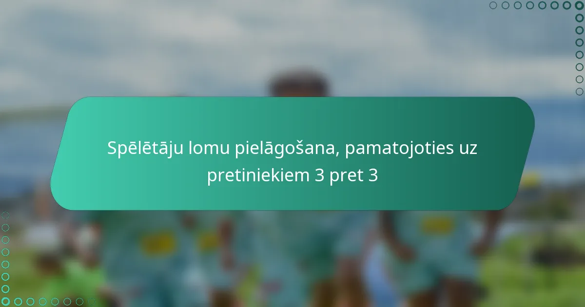 Trīs pret trīs spēlēs spēlētāju lomu sadalījums aizsargiem, pussargiem un uzbrucējiem ir izšķirošs komandas stratēģijai. Pielāgojot šīs lomas, pamatojoties uz pretinieku stiprajām un vājajām pusēm, komandas var uzlabot savu sniegumu un palielināt panākumu iespējas. Analizējot pretinieku spēles stilu, spēlētāji var veikt informētus pielāgojumus savām taktiskajām pieejām, nodrošinot, ka viņi efektīvi reaģē uz dažādām izaicinājumiem laukumā.
