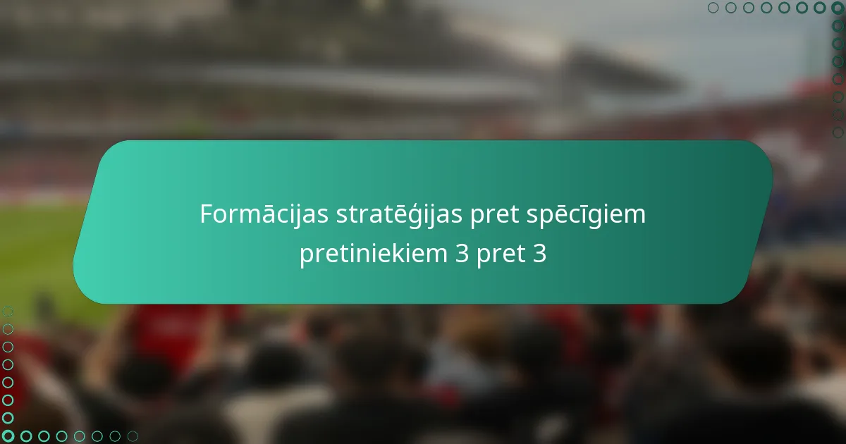 Spēlējot trīs pret trīs pret spēcīgiem pretiniekiem, efektīvas formācijas ir būtiskas, lai izmantotu komandas stiprās puses un minimizētu vājās. Izmantojot izkārtojumus, piemēram, 1-2 un 2-1, var iegūt skaidras priekšrocības, taču skaidru spēlētāju lomu definēšana ir izšķiroša, lai saglabātu līdzsvaru un maksimizētu vārtu gūšanas iespējas. Izmantojot taktisko pozicionēšanu un ātras pārejas, komandas var izmantot pretinieku vājās vietas un pielāgoties spēles dinamikai.