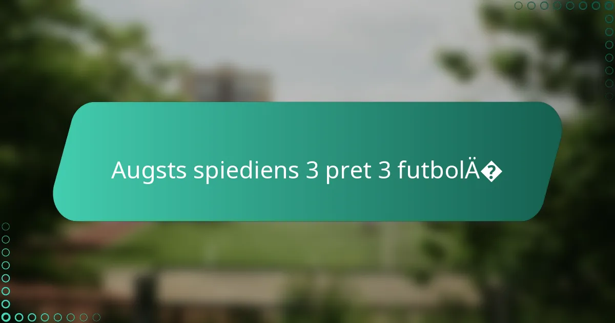 Augsts spiediens 3 pret 3 futbolā ietver intensīva spiediena izdarīšanu uz pretinieku komandu, lai ātri atgūtu bumbu. Šī taktika balstās uz efektīvām formācijām, skaidrām spēlētāju lomām un spēcīgu komunikāciju, lai traucētu pretinieka spēli un radītu vārtu gūšanas iespējas.