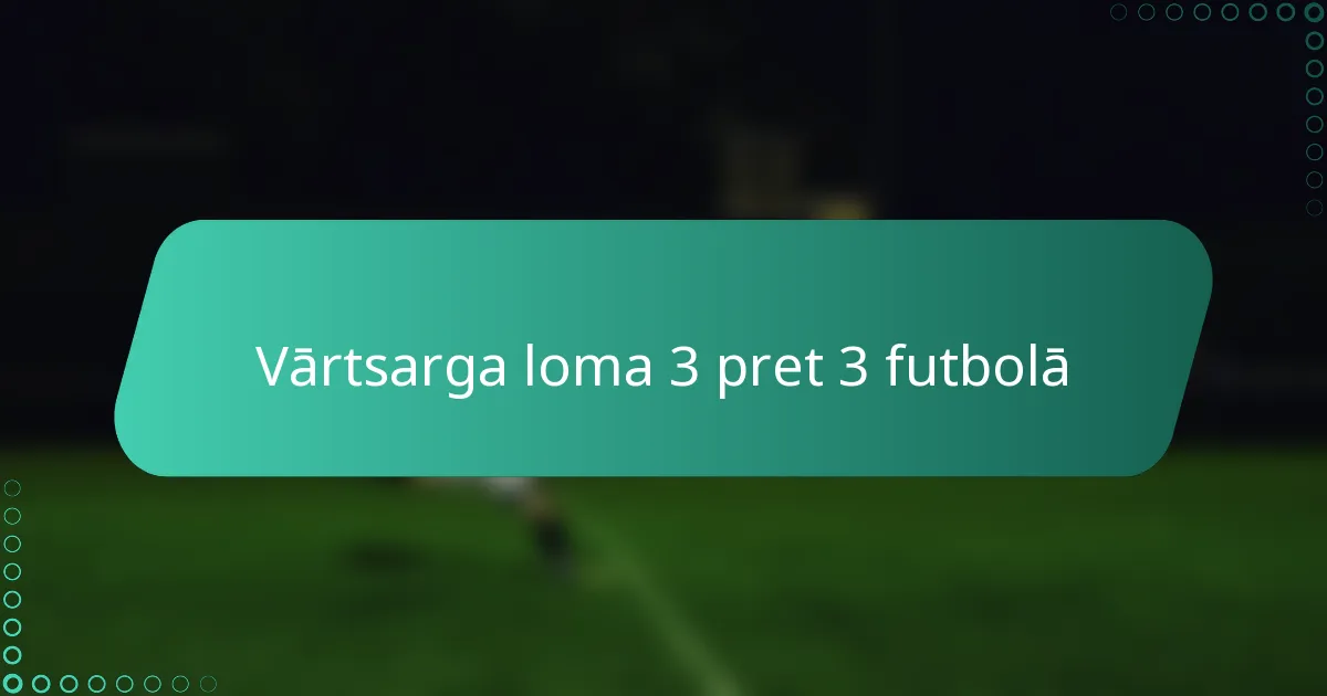 3 pret 3 futbolā, kur telpa ir ierobežota, vārtsargam jābūt proaktīvam, atbalstot savus komandas biedrus. Tas ietver iespēju nodrošināt piespēles un būt pieejamam ātrai izsniegšanai. Vārtsargs, kurš ir saskaņots ar saviem laukuma spēlētājiem, var ievērojami uzlabot komandas kopējo sniegumu.