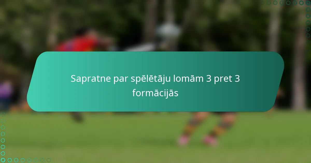 3 pret 3 futbola formācijā katram spēlētājam ir atšķirīgas lomas, kas veicina komandas kopējo stratēģiju. Galvenās lomas ietver uzbrucēju, pussargu un aizsargu, katram ar konkrētām atbildībām, kas uzlabo gan uzbrukuma, gan aizsardzības spēli.